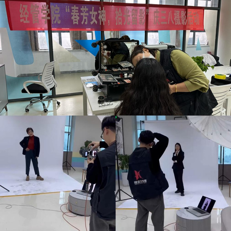 以光影展现师者风范,以镜头定格美好瞬间。3月6日,经管学院邀请专业摄影、化妆师团队,为学院女教工拍摄形象照,打造个人形象,展示教师风采。拍摄现场女教工妆容精致、精神抖擞,造型优美、姿势优雅;活动全程秩序井然,拍摄氛围轻松愉悦,女教工们对照片满意度高。此次形象照拍摄实用美观,满足了教工们参加学术交流、报告会的实际需要,便于教师对外合作交流个人形象的宣传,此次活动即是女教职工展现良好风貌的美好体现,也是在节日来临时收到的温情礼物,提升了女教职工的参与感、幸福感。