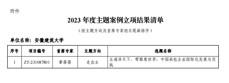 本网讯 2024年3月25日,教育部学位与研究生教育发展中心(简称教育部学位中心)正式公布2023年主题案例立项结果。我院章蓓蓓老师为首席专家牵头申报的选题《五通泽天下,带路惠世界:中国承包企业国际化发展与实践》获得“走出去”主题立项。