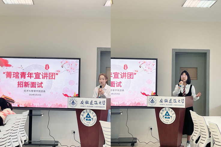 本网讯 经管学院团委于2023年组建“菁琯青年宣讲团”,聚焦习近平新时代中国特色社会主义思想、党的二十大精神、党史学习教育,以及红色情景剧、经典吟唱大赛等主题,开展系列宣讲和主题活动,旨在讲好中国故事,带领全院师生做中华优秀文化的传播者。为继续壮大宣讲团队伍,广泛吸纳有志青年。3月29日,经管学院在建树楼525活动室开展宣讲团总结表彰暨招新大会。学院团委学生会骨干代表及30名竞聘同学参与活动。