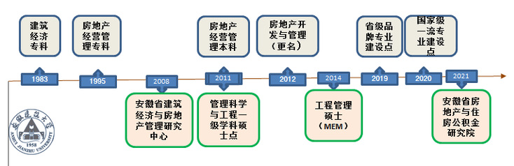 本校是国内率先设立房地产开发与管理专业的高等院校之一,对区域房地产市场的高速增长发挥了关键的促进作用。自1985年起,本校便开设了“房地产经营管理”专科课程,随后于2011年正式招收全日制本科生。2012年,根据教育部《普通高等学校本科专业目录》的更新,对专业名称、学科门类进行了优化调整,将专业名称更改为“房地产开发与管理”。2020年,入选国家级一流专业建设点。