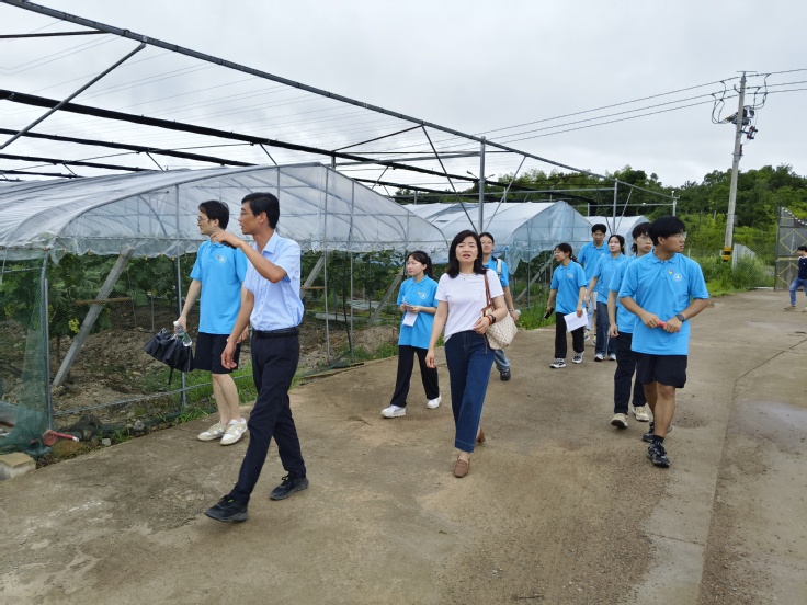 为了解当地特色产业发展现状,实践团对当地多个特色产业基地进行实地考察。在汤池村和三江村,同学们深入蔬菜大棚养殖基地、瓜蒌基地、葡萄种植基地等,基地采用的全面滴灌技术和机械自动化生产模式,有效提高了农作物产量和质量。近年来在政府的精准扶持和当地村民的积极努力下,基地建设和产业发展取得了显著成效,基地负责人的详细介绍让同学们深刻认识了现代农业技术的重要性。调研中,实践团还探索了团队成员参与当地优质品牌打造、农产品销路拓宽、网络营销传播等方面的可能性,期待为汤池村的特色产业发展贡献建大学子力量。