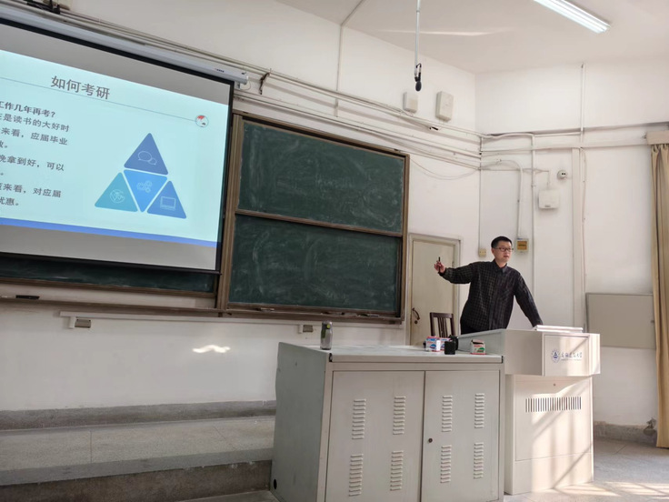 沈永昌从考研、就业、创业、出国四个方面进行逐一讲解,帮助新生们初步了解和认识未来专业学习和发展前景,鼓励大家明确自己的专业发展方向,强化专业综合能力。