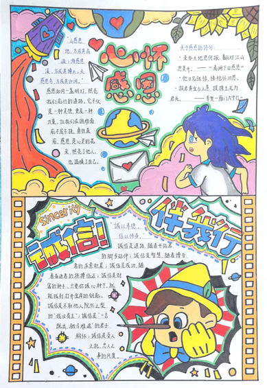 【资助主题教育】经管学院开展“怀感恩心,做诚信人”资助主题手抄报评选活动