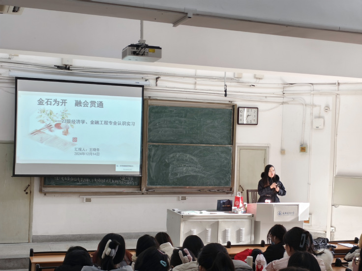 本网讯 为了增进经济学、金融工程学生专业认识,提升专业兴趣,明晰职业前景。12月15日下午经济系在金寨路校区建树楼118教室开展认识实习专题讲座。特邀徽商银行个人移动金融部王晓冬经理担任主讲嘉宾,讲座由经济系主任李娜娜主持,全体2023级经济学和金融工程专业学生参加。