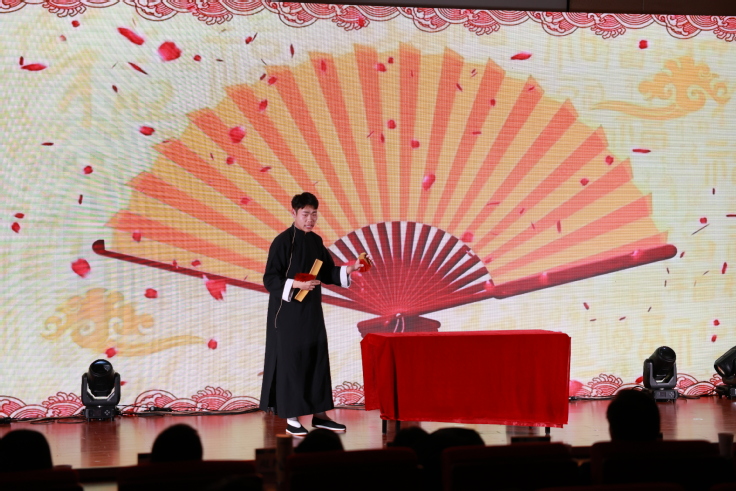 迎新年文艺展演在平转立乐队开场歌曲串烧中进入高潮。本次展演内容丰富,形式多样,涵盖了歌曲、舞蹈、小品、快板、演讲等多种表演形式,旨在展示学院师生在过去一年所取得的辉煌成就,表达对新年的美好祝愿。《易冷烟花乱,姬别霸王叹》和《舞蹈串烧》展现出不同舞蹈艺术的魅力,独唱《光年之外》《至少还有你》体现了流行文化艺术的风采,快板《武松打店》更是以独特的表演形式带大家体验丰富的故事情节,既领略到传统曲艺快板的魅力,又重温经典故事,感受传统文化的深厚内涵。《学习的诱惑》通过独特的配音形式呈现学习生活相关的故事,让原本略显枯燥的日常琐碎变得妙趣横生。