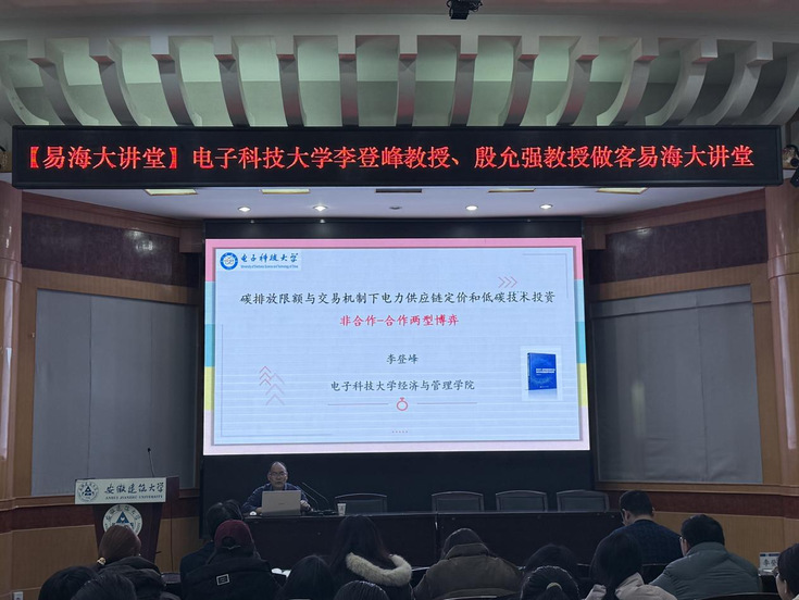 李登峰教授介绍了在碳排放限额背景下,电力发电厂和电力零售商之间的竞争与合作行为,并分析了电力供应链定价和低碳技术投资非合作-合作两型博弈模型的建立和求解过程,探讨了碳排放限额与交易机制下电力供应链的价值共创及碳减排策略的优化路径。
