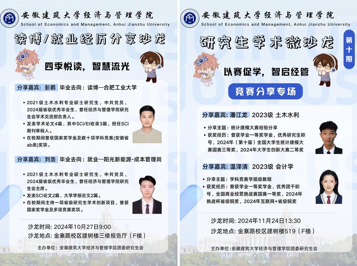 深耕细作,品牌育人结硕果。在创建过程中,“问道经管 研途共话”研究生学术微沙龙品牌的牵引力、辐射力、影响力不断提升,受益面不断扩大。2024年,经管学院研究生在各类学科竞赛中50人次获奖,其中省级以上奖项10项;发表高水平论文10篇,其中1人在工程管理领域权威期刊《Engineering, Construction and Architectural Management》上发表最新研究成果;共有4人考上博士研究生,创造历史新高。