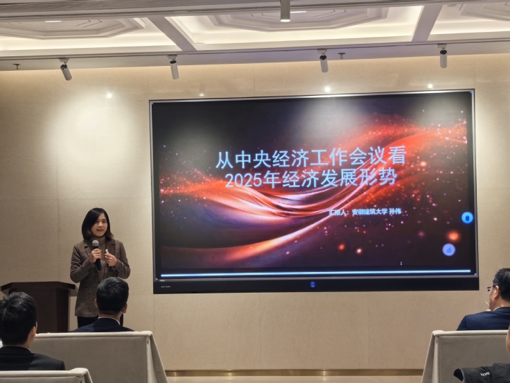 本网讯 2025年1月10日下午,经济与管理学院数字经济专业硕士点负责人孙伟教授应邀赴浦发银行合肥分行私行中心作题为《从中央经济工作会议看2025年经济发展形势》的专题报告,学院房地产系副主任张中亚博士一并参加。浦发银行合肥分行副行长、国泰君安证券安徽分公司总经理以及浦发银行安徽各地市支行行长等人员参加了报告会。