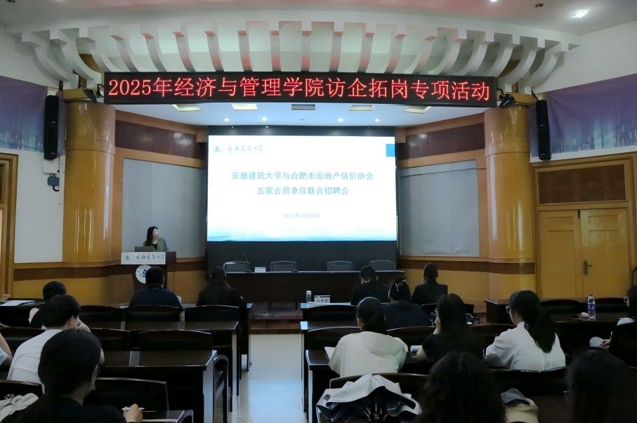 本网讯 为进一步拓展就业渠道,推动学院毕业生实现高质量就业,4月28日,应经管学院邀请,合肥市房地产估价协会5家会员企业建树三楼报告厅举办专场招聘宣讲会,学院近70名2025届毕业生参会。