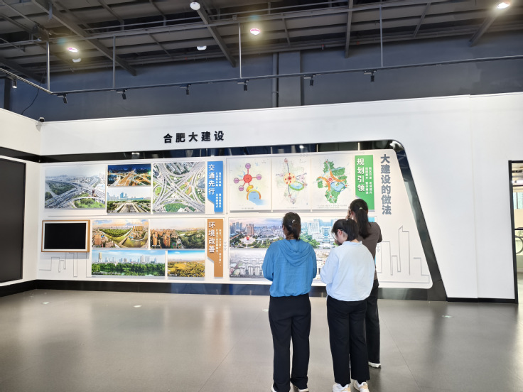 在航站楼旧址的城市建设馆同学们通过图片、视频、实物资料等充分了解了合肥市城市建设历程、数字城市建设、高新技术产业发展、特色街区等情况。