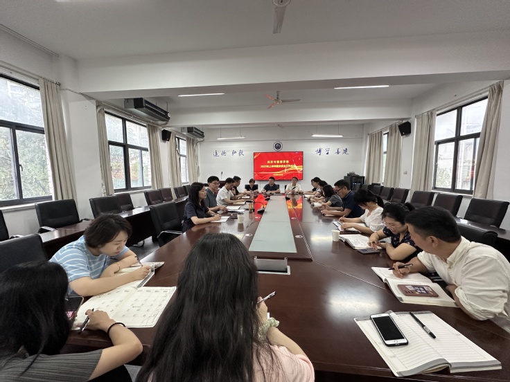 本网讯 6月20日下午,经济与管理学院在建树楼404会议室召开2025年上半年期末安全工作会议。学院领导班子成员、教学办、科研办、实验中心负责人及全体辅导员参加会议,会议由学院党委书记陈国中主持。