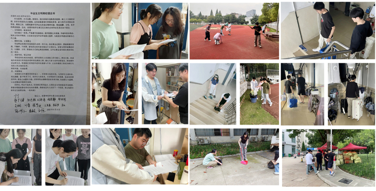 学院将安全教育与文明离校倡议贯穿始终,积极开展防电诈、防溺水、守护交通安全等系列安全教育活动,强化宿舍安全隐患专项排查,引导毕业生遵守校规校纪,自觉维护校园秩序。学院组织“文明离校承诺”活动,签署和发放文明离校倡议书、美化校园大扫除、助力毕业生行李搬运、“青春不散场,旧物遇新主”毕业季跳蚤市场等,用实际行动诠释经管学子的责任意识,让文明离校成为毕业季最亮丽的风景。
