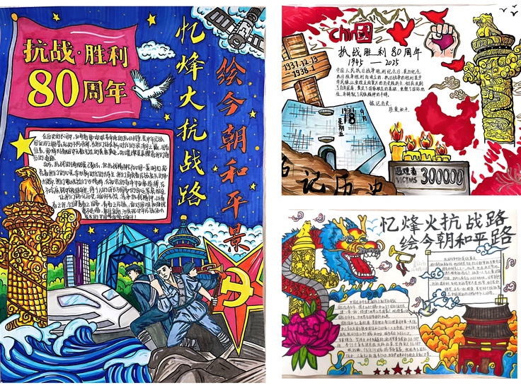 活动期间,同学们踊跃参与,一幅幅精美的手抄报作品既融入厚重的历史元素,又兼具灵动的艺术表现手法,以独特视角诠释抗战精神。这些作品通过艺术创作搭建起青年学子与历史沟通的桥梁,让红色基因在新时代绽放青春光彩。