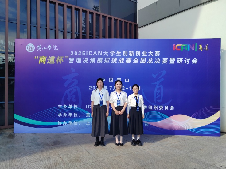本网讯 7月14日晚,2025iCAN大学生创新创业大赛“商道杯”管理决策模拟挑战赛全国总决赛在黄山学院圆满落幕。我校学子张雨、李志慧、王佳慧组成的“练习生小队”获得全国总决赛二等奖,范颖、申雨欣、戴典格组成的“新颖阁”和张有权、陈永智、汤斌组成的“拉啦队”获全国总决赛三等奖。iCAN大学生创新创业大赛是鼓励原创精神,培养创新思维,提升实践能力的大学生综合性创新赛事,自2007年发起至今,得到了广大青年学生的热爱。2010年,iCAN大赛获批《教育部、财政部关于批准2010年度大学生竞赛资助项目的通知》大学生竞赛资助项目。2023年,iCAN大赛入选《全国普通高校大学生竞赛分析报告》竞赛目录,编号54。