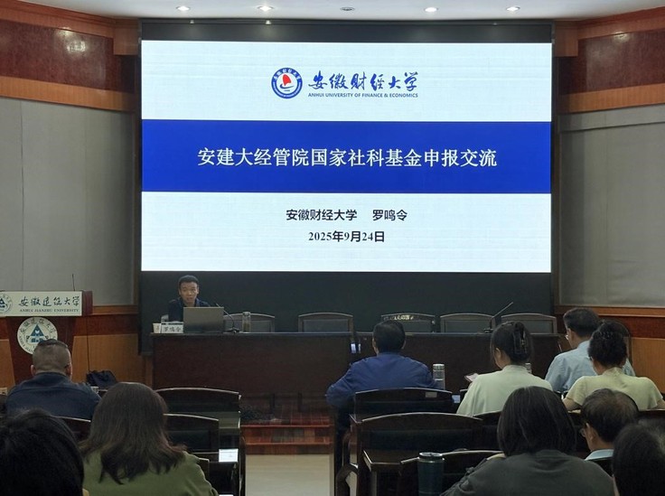会议第一阶段,特邀安徽财经大学罗鸣令教授分享申报经验并作专题辅导。他结合自身国家社科基金申请书撰写及评审经验,围绕前期准备、选题、论证、形式审查要点等方面系统介绍了社科基金申报技巧和注意事项。与会老师认真聆听、领悟吸收、受益匪浅。