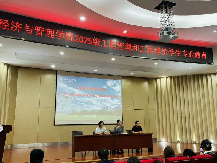 在入学教育讲座环节,杨苏以“新征程、新目标、新未来”为主题展开分享,系统介绍了工程管理与工程造价专业的培养目标、课程体系和就业方向,介绍了工程管理系的师资力量,专业发展历史,展示了专业发展成果,结合城市更新和未来新型城镇化发展分析了专业发展的新一轮机遇。