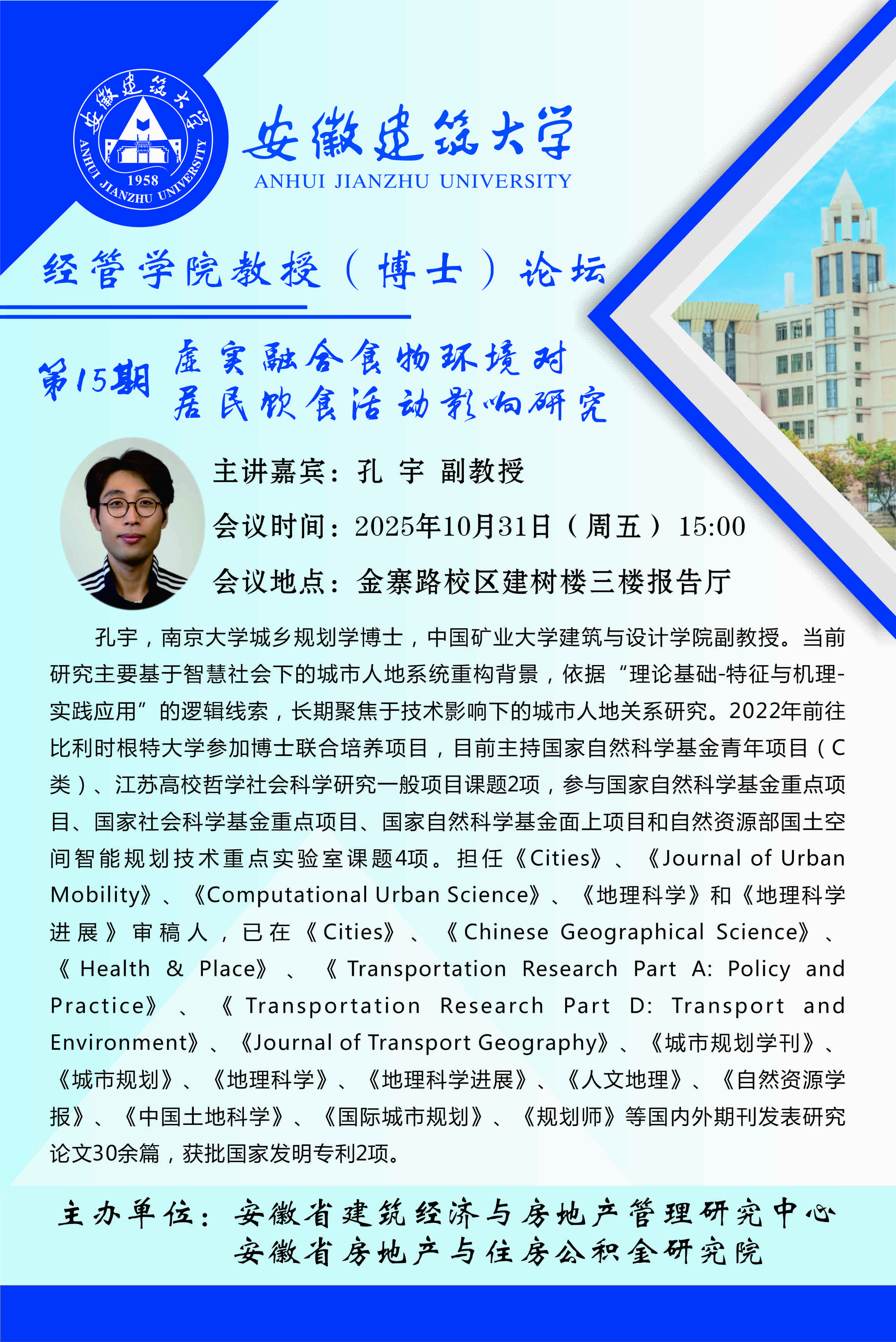 【预通知】经管学院教授(博士)论坛:虚实融合食物环境对居民饮食活动影响研究