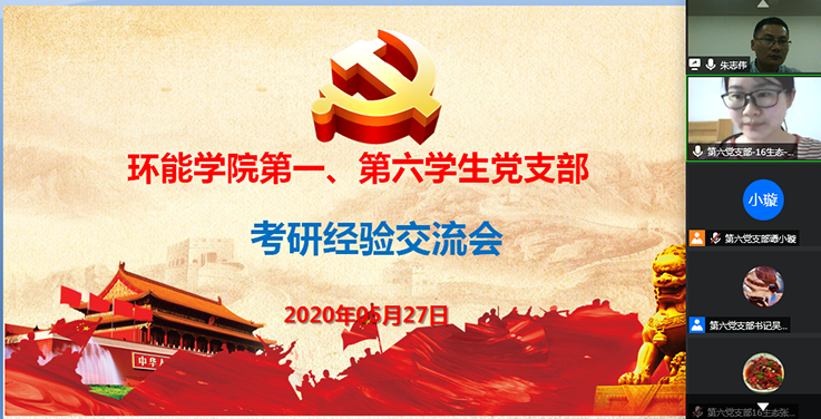 本次联合考研经验交流会也是第一、第六学生党支部主题党日活动的一次创新尝试,会前两个支部做了充分准备,通过相互交流,不仅加强了不同支部不同专业之间的联系,也进一步提高环能学子的考研热情,使同学们有了更加明确的定位,为他们科学合理的安排考研学习奠定了基础。(作者:朱志伟 审稿:胡志龙)