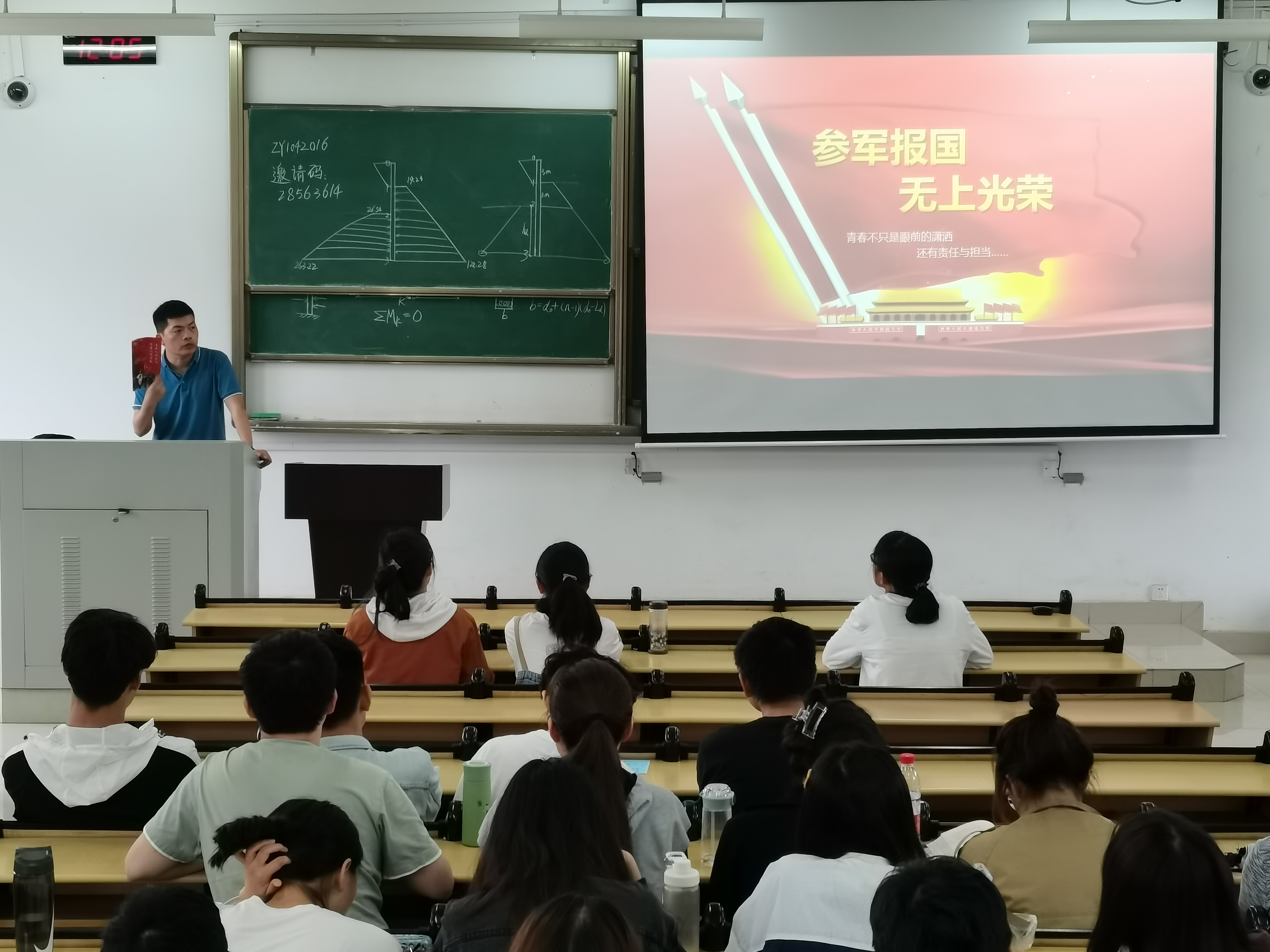 本网讯 为进一步做好2021年大学生征兵宣传工作,鼓励应届毕业生积极应征入伍,提升兵源征集和就业质量,为推进国防和军队现代化建设添砖加瓦。近期,环能学院2021届毕业生各专业组织召开了征兵宣传动员主题班会。