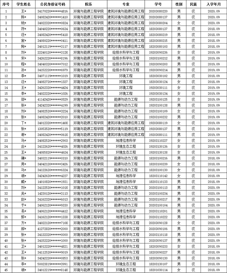 根据校学函〔2021〕94号《关于做好2021年国家奖学金、国家励志奖学金及国家助学金评定工作的通知》的要求,经个人申报,资格审查,学院评审委员会讨论、初审,拟推荐王*等45人参评2021年国家励志奖学金。