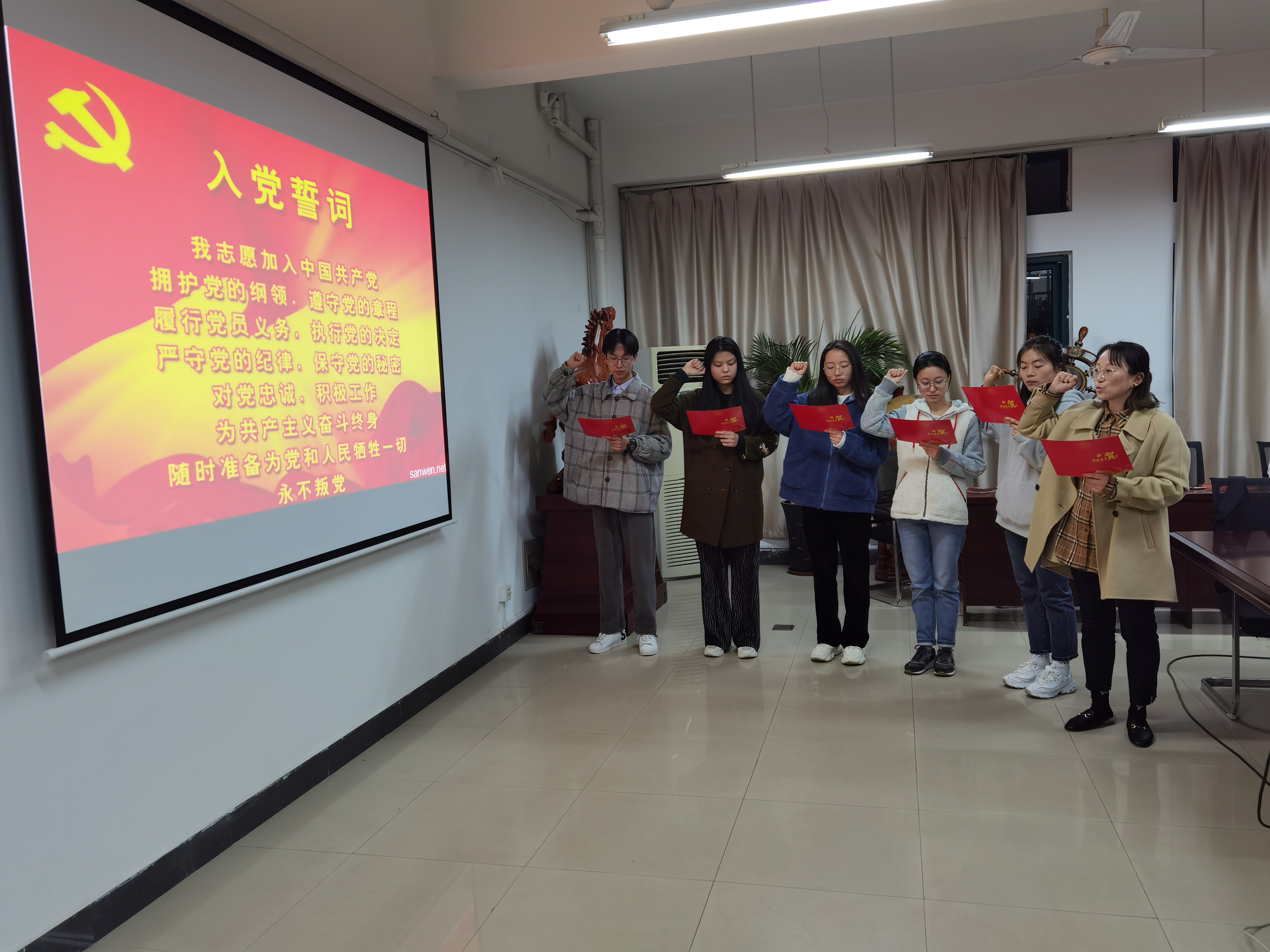 本网讯 为增强支部党员的责任感和荣誉感,让党员感受到组织的温暖关怀,切实提高党员的党性修养,12月8日,环能学院学生第一党支部为12月份入党的6名党员集体过“政治生日”。支部书记朱志伟主持活动,支部34名党员参加大会。