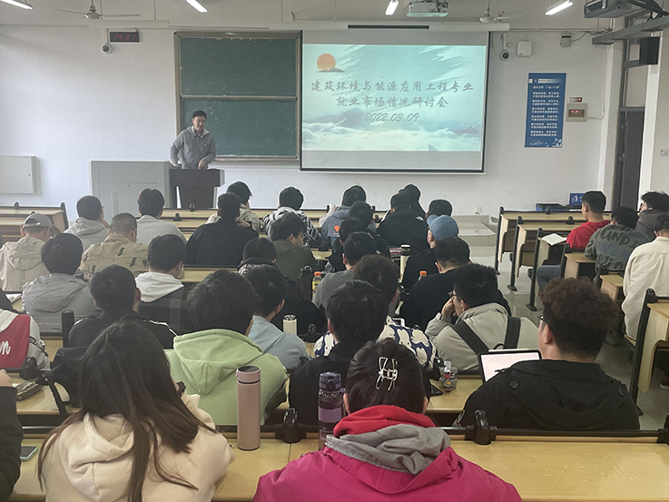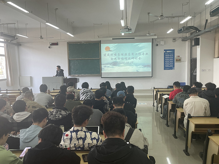 本网讯 为增强学生对就业前景的了解,进一步推进学院就业工作。近日,环能学院在逸夫楼104教室举办“朋辈就业经验交流会”,本次会议邀请三名2019级研究生围绕就业方向、公考、面试等内容与同学交流。