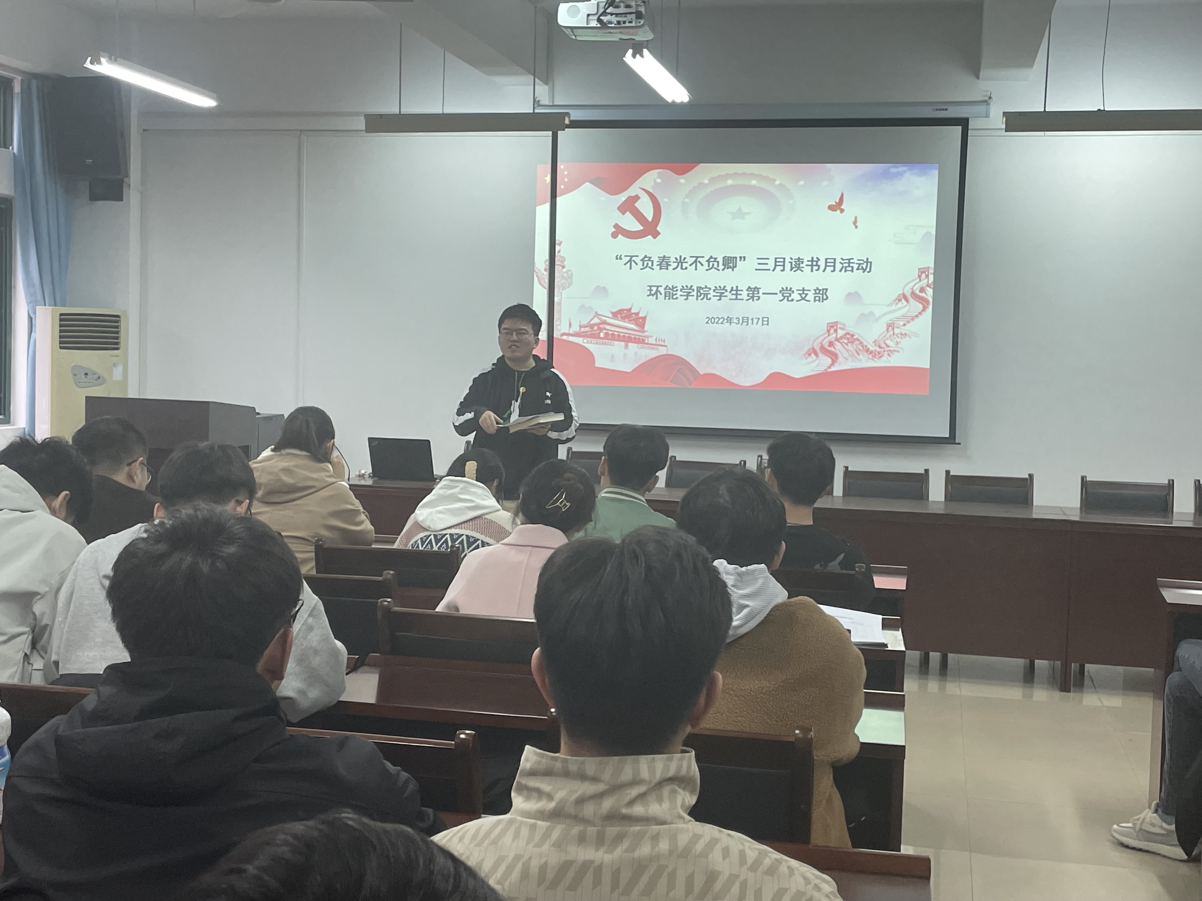 本网讯 为进一步推进学习型党支部建设,营造良好学风氛围,3月17日,环能学院学生第一党支部开展“不负春光不负卿”读书分享会活动。