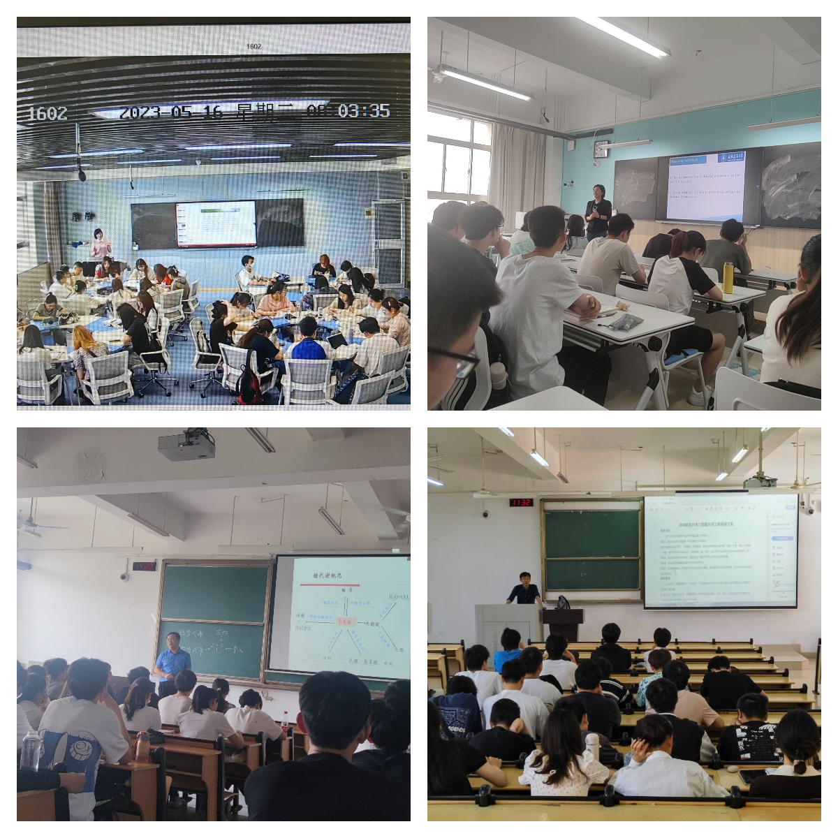 根据学校总体部署,积极开展“教学质量文化建设月”系列活动。与外国语学院进行互听课活动,对外国语学院54位老师的课程进行线上、线下相结合的听课活动,做到有交流、有反馈、有提高。学院各系开展“教学示范课”活动,每个系选择两位教学经验足、口碑好、水平高的教师进行课堂教学示范,系里所有老师与学生一起听课、学习、交流。开展审核评估主题班会活动,本科生学业导师给学生召开专门会议宣传审核评估,让学生了解审核评估目的意义、评估内容要求、时间安排等。根据学校要求,开展教师、学生教学体验调研问卷调查,学院教师、学生参与率都位居学校各院前列。