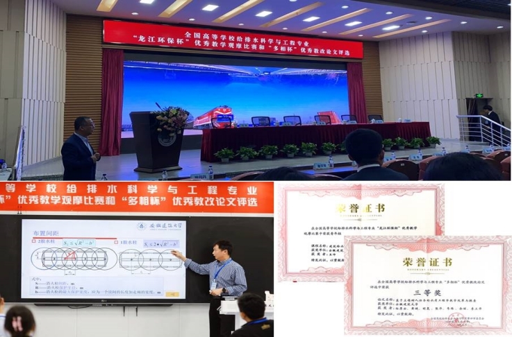本网讯 5月26至28日,由教育部高等学校给排水科学与工程专业教学指导分委员会(以下简称“给排水教指委”)主办,吉林建筑大学承办的全国高等学校给排水科学与工程专业“龙江环保杯”优秀教学观摩比赛和“多相杯”优秀教改论文评选暨课程思政示范培训会在长春召开,环能学院一行三人参加本次会议,王坤副教授受邀参加优秀教学观摩比赛,获得优胜奖,杨厚云副教授参加优秀教改论文评选,获得三等奖。