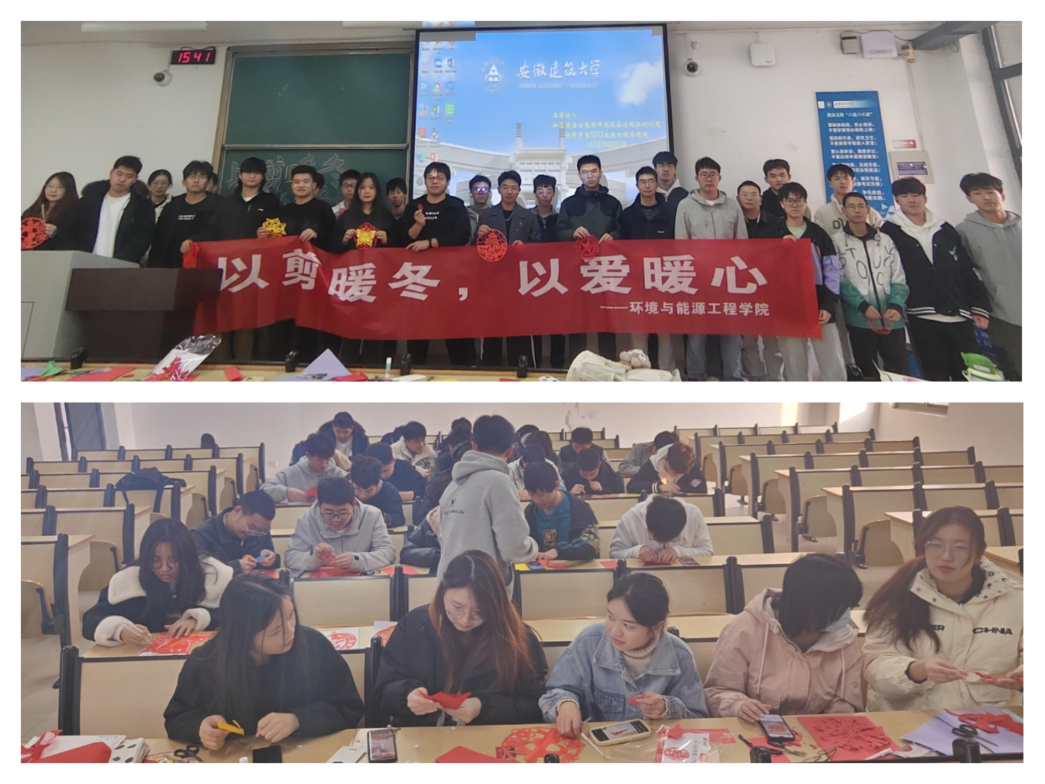 本网讯 为传承并弘扬中华传统文化,丰富同学们的课余生活,提高动手能力和创造力,促进学生们之间的交流与合作,1129日,环能学院在逸夫楼5101教室举办了“以剪暖冬,以爱暖心”剪纸活动。