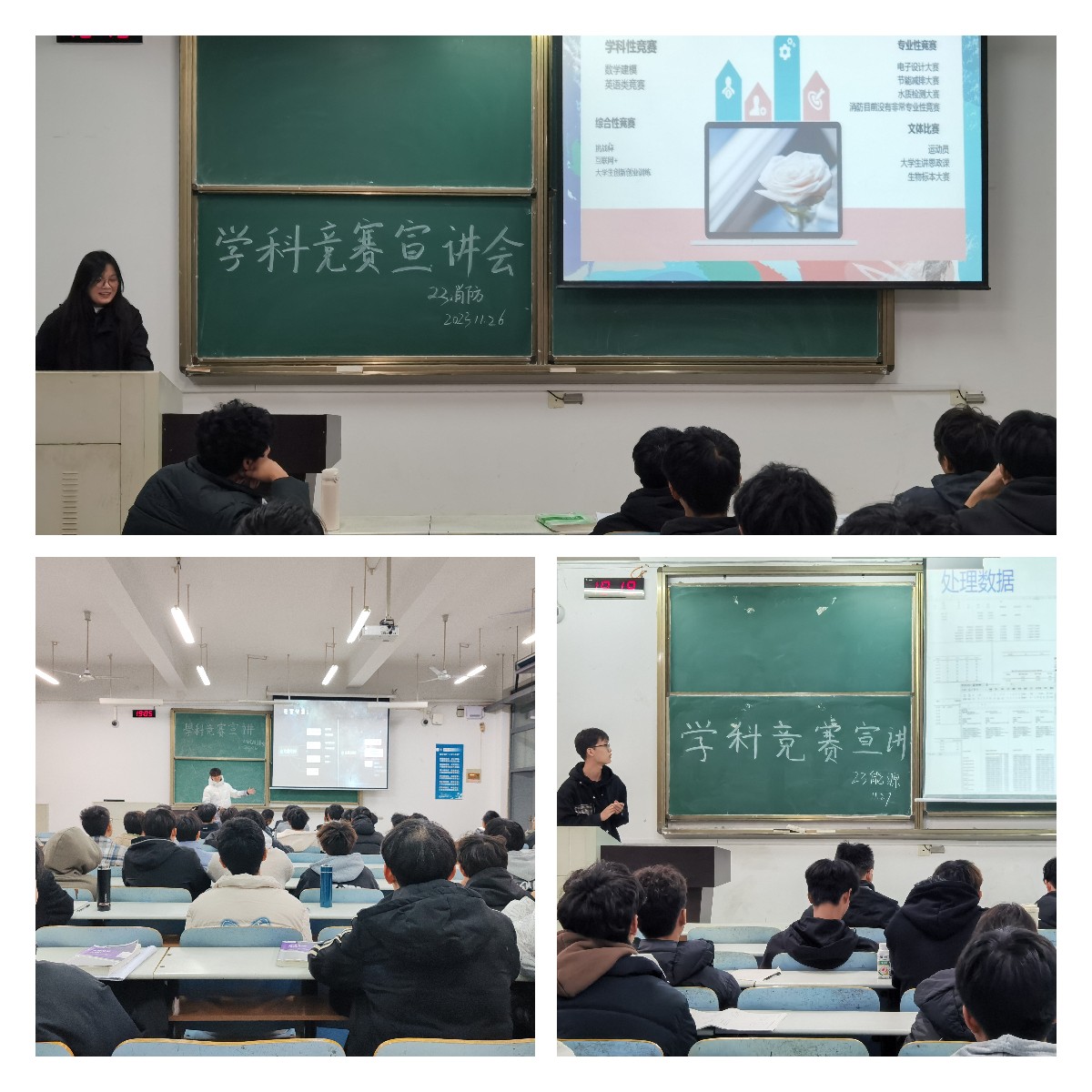 本次活动为期一周,邀请获得省级以上学科竞赛荣誉的同学向大一新生介绍各类专业竞赛知识,就如何选择竞赛项目、相关赛事的基本规则与参赛所需基本准备等进行详细解说。21级给排水专业黄子睿在宣讲中告诉大一新生,学科竞赛是一个展示自我才能的平台,是实现自我梦想的专业舞台。同学们要积极参于各类应学科竞赛和各项创新创业活动中,用竞赛提升知识素养、用舞台砥砺个人成长。讲座内容详实,气氛热烈,在交流互动环节,主讲人针对性地为同学们进行了解疑答惑。