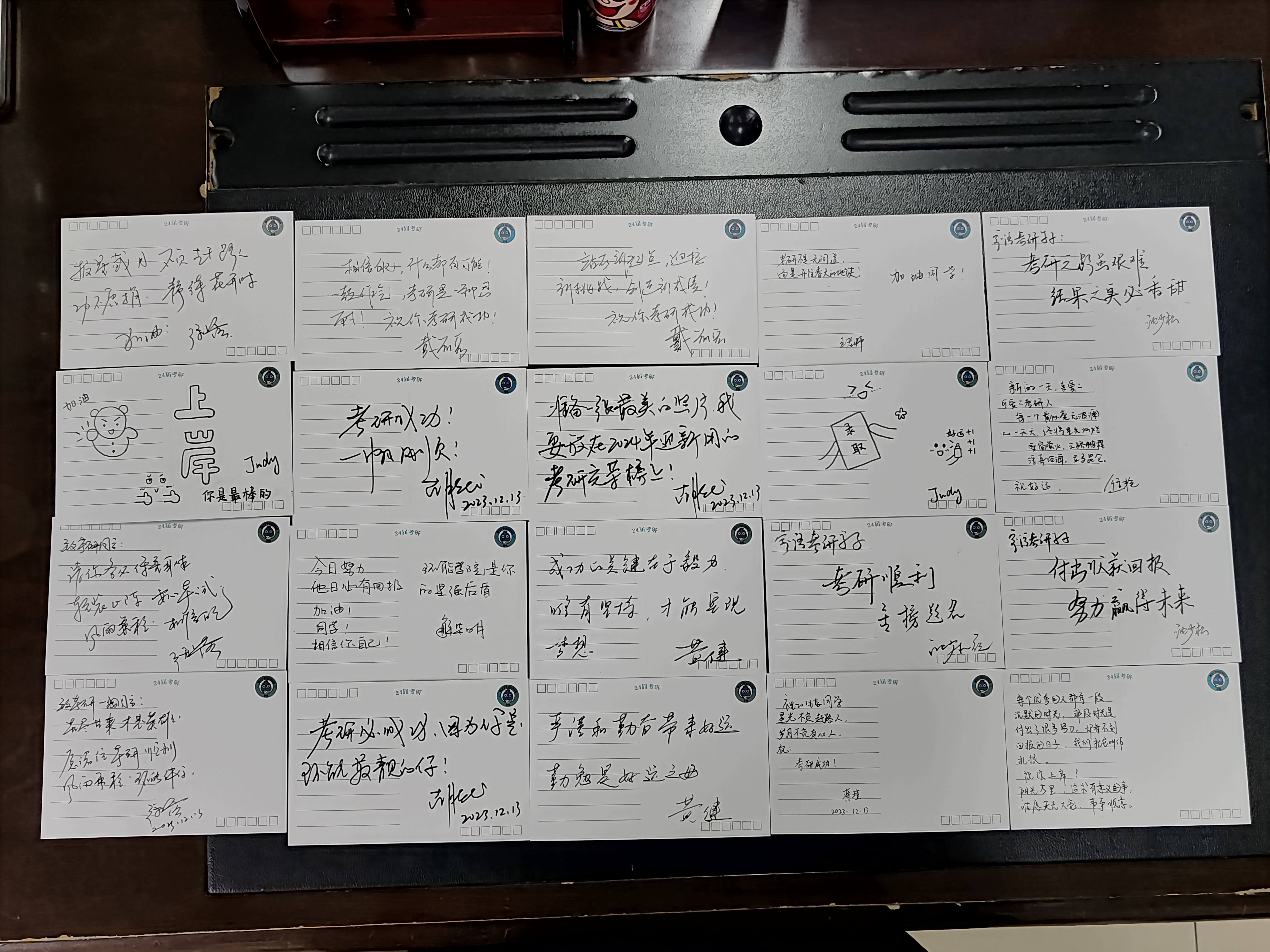 每一份“考研爱心礼包”都寄托着学院领导老师对学子们的殷殷关切和美好祝福。286份爱心大礼包中不仅有学院为考研学子准备的考试文具套装,还有辅导员精心准备的零食,更有各领导老师亲笔写下的贺卡“追风赶月莫停留,平芜尽处是春山”是老师们的谆谆教诲;“路遥而不坠其志,行远而不改其初衷”是老师们的衷心祝愿;“有梦不觉天涯远,扬帆起航再出发”是老师们的殷切期望。诚挚的祝愿,寄托着老师们的关心与爱护,希望同学们都能实现梦想,一战成硕!