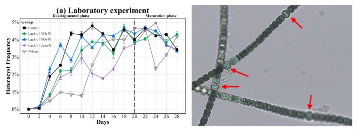 随着近几年巢湖水环境污染治理工程的投入,N、P营养盐浓度在逐步下降,其中对TN的控制尤其明显,这导致有害蓝藻长孢藻成为优势属。长孢藻作为典型的固氮蓝藻,能在氮限制条件下分化异形胞固定空气中的N2,但对于特定的氮化合物缺乏情况其异形胞响应机制尚不明确。因此,本研究使用了NH4Cl、NaNO3、Urea为氮源,设置了相应氮源的缺乏实验以探究长孢藻对其的响应机制,并结合巢湖历史数据分析影响长孢藻异形胞频率的驱动因素。研究表明NO3-的缺乏将促进长孢藻的生物量和异形胞频率,当限制NH4+的添加将抑制长孢藻增殖且延长了异形胞发育的周期,而长孢藻应对Urea的缺乏提高了异形胞频率但生物量未显著增多;巢湖长孢藻异形胞频率存在明显的季节性变化,营养盐是最直观的驱动因子,异形胞频率和分化与不同氮源及其浓度呈负相关,而NO3-及Urea缺失对异形胞分化的贡献明显强于NH4+;限制NO3-的输入长孢藻仍能通过高频分化异形胞固氮,使细胞增殖不受抑制。本研究为后续巢湖富营养化治理提供了新的策略,营养盐控制过程中对NH4+的削减需要加强,研究结果也为巢湖蓝藻水华控制提供重要的理论支撑。(作者:余丽,刘子琛;一审:侯晓云 二审:黄健 三审:谢发之)