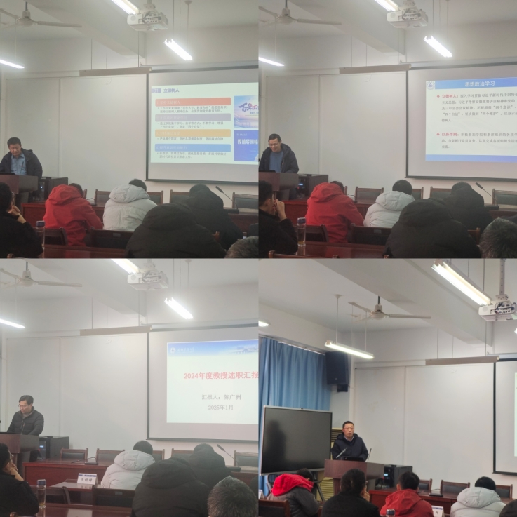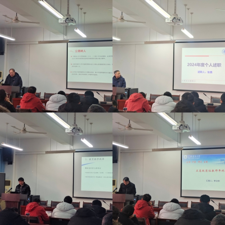 学院正高级岗位教师依次在总结年度工作的基础上,围绕立德树人、教育教学改革、科研与社会服务、实验室建设、青年教师培养、学生培养等方面进行述职,并对新一年的工作开展进行谋划与思考。