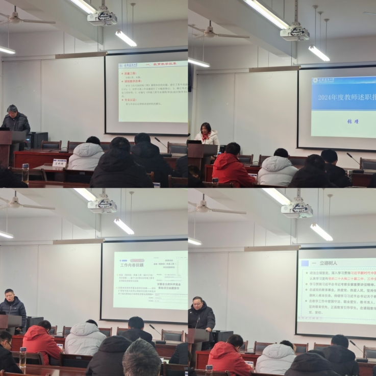 本网讯 根据学院工作安排,1月10日,环能学院在徽文楼202会议室召开2024年度教师(正高级岗位)述职评议大会,学院21名正高级岗位教师现场述职。会议由学院党委副书记、院长谢发之主持。