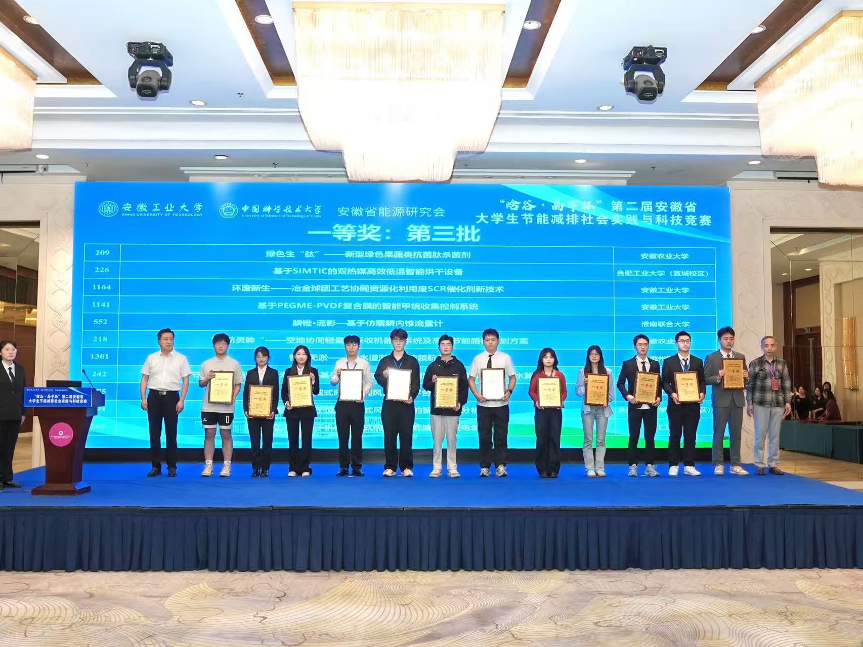本网讯 近日,第二届安徽省大学生节能减排社会实践与科技竞赛决赛在马鞍山落幕。来自省内的32所高校参加本次参赛,我校学生团队表现突出,共获一等奖1项,二等奖1项,三等奖7项优秀成绩,学校获优秀组织奖。