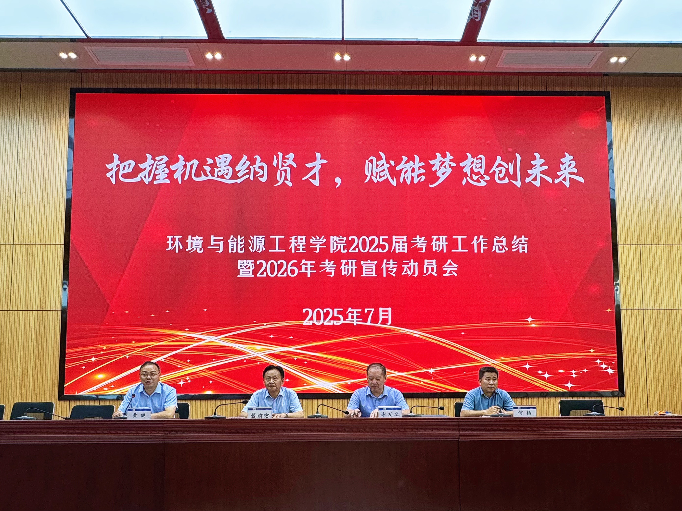 本网讯 环境与能源工程学院2025届考研工作总结暨2026年考研宣传动员会于718日在徽韵楼二楼报告厅召开。会议由副院长黄健主持,学院领导、导师代表、各系主任、相关教务、学工老师以及备考2026年研究生入学考试的在校生近二百人参会。