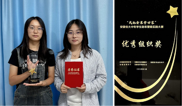 本次大赛由团省委、省教育厅、省农业农村厅等八部门联合主办,以“助农营销实践”为核心,设置“营销策划+实践销售”双赛道,吸引全省150余所院校、1760支团队、超12000名学生参与,最终评选出金奖5项、银奖14项、铜奖27项。在本次赛事的组织动员工作中,校团委高度重视、积极响应,广泛宣传、全面发动,精心组织了校级选拔与培训指导工作,共有70支学生团队参与角逐。凭借方案的创新性、实践的实效性及社会影响力,“农产新光”团队荣获金奖、“金寨‘寨主’养成班”团队获铜奖、“饶土金农”团队获“助农大使”奖项。