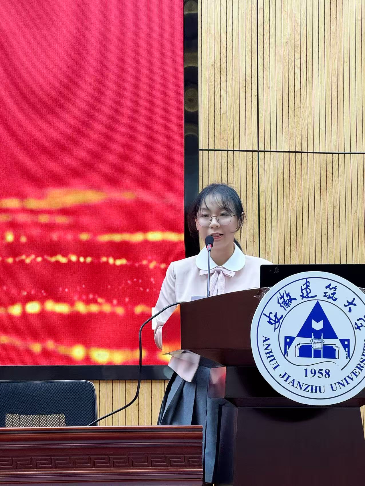 2025级环境工程研究生余大伟代表全体新生表达了对未来研究生生活的憧憬,并对未来的大学生活充满了期待。在发言中,他提出了四点主张,与台下全体新生共勉:一是要扎根专业沃土,服务国家战略;二是要传承建大精神,砥砺学术品格;三是要融入集体成长,共创美好未来。