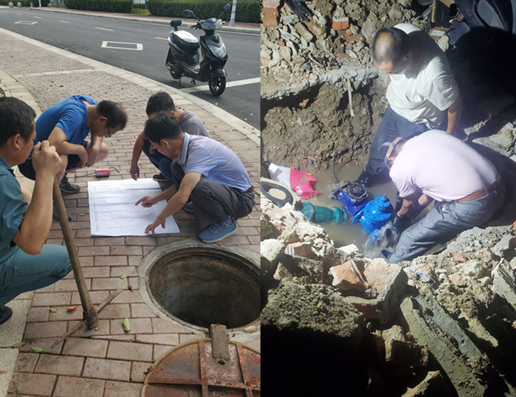 在抢修过程中,集团的党员干部身先士卒,数日来始终坚守一线,克服困难,冒雨连夜检修,在污泥、污水中仔细排查,为不影响食堂的正常用水,所有维修工作都在夜间进行。经过日夜不懈努力发现故障,迅速解决故障,回填路面,发扬了共产党员不怕苦、不怕累、冲锋在前、勇于担当的精神。