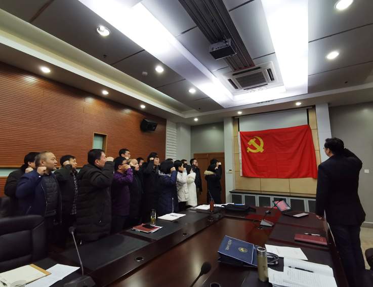 “我志愿加入中国共产党,拥护党的纲领……随时准备为党和人民牺牲一切,永不叛党。”12月17日,后勤服务集团党总支在图书馆五楼会议室举行预备党员入党宣誓仪式。后勤服务集团全体党员及新发展的两名预备党员参加仪式。