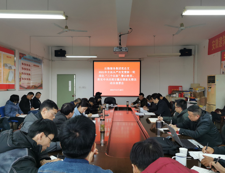 3月18日,后勤服务集团党总支召开党史学习教育暨新一轮深化“三个以案”警示教育部署动员大会,集团全体党员参加会议,会议由集团党总支副书记孙永主持。