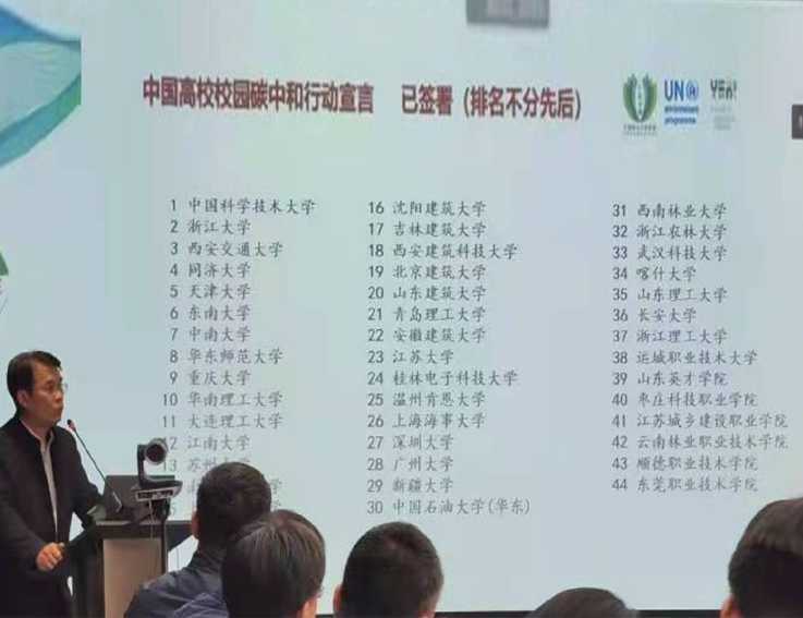 全国共有44所院校签署,这些院校大多是我国最早起步的绿色校园示范校园,在3060新的国家战略目标下将成为我国碳中和校园的领跑者。