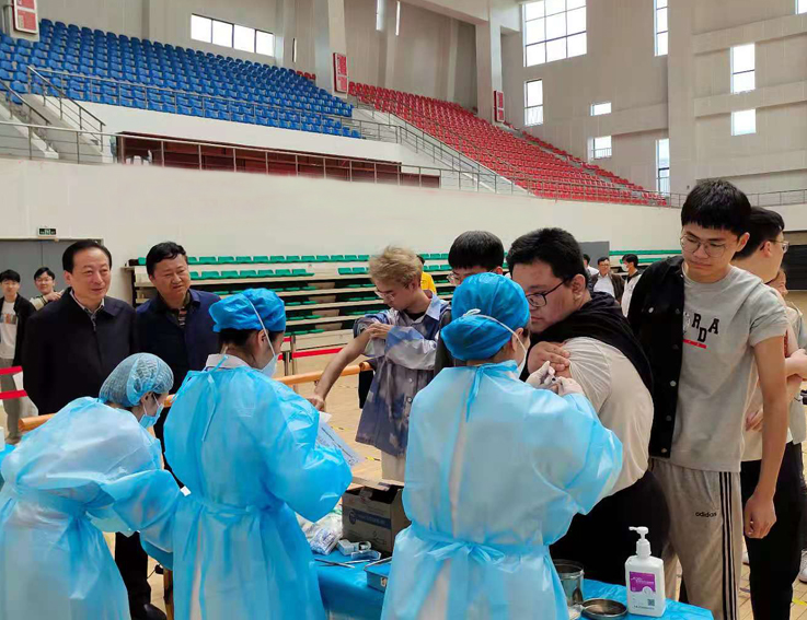 4月27日,学校开始为期三天的疫苗接种工作。师生接种疫苗期间,副校长蔡新立多次到接种现场查看工作组织实施情况、慰问医务人员、看望师生。后勤集团、学生处、保卫处工作人员积极布置接种场所、维护现场秩序、指导信息填报,确保接种工作有序进行。