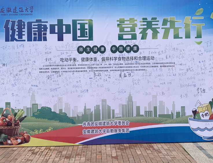 5月20日上午,后勤服务集团与校团委在学校南校区南苑餐厅广场共同举办“健康中国,营养先行”签名活动,普及营养健康知识、传播营养健康理念,引导师生树立正确健康观、提升健康素养和养成健康生活方式。