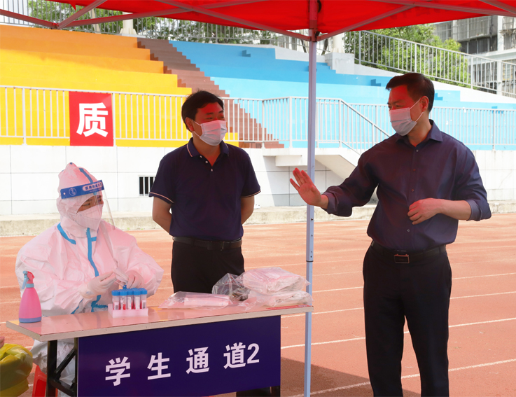 本网讯  为全面筑牢疫情防控防线,切实做好新冠疫情防控工作,按照上级疫情防控部门要求,423日,学校在南校区运动场组织开展全员核酸检测,实现南校区师生、校内租房人员、第三方服务人员全覆盖。校党委书记孙道胜,校党委副书记、校长黄显怀,校党委常委、副校长蔡新立深入现场检查指导工作。