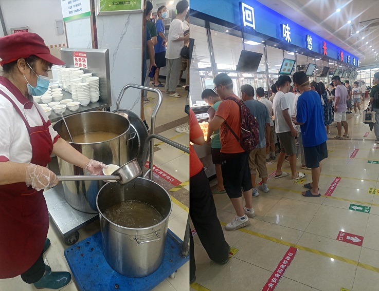 暑假期间,南苑餐厅B区、北园餐厅二楼分别作为南北校区值班食堂正常开餐。各值班食堂在规范操作、安全卫生的基础上,结合暑期天气炎热及留校学生和校园施工人员多等特点,合理安排开餐时间,调整菜品结构,丰富花色品种,在菜肴制作上,以清淡可口、清凉消暑食品为主,增加同学们食欲,同时每天供应免费汤和绿豆汤。后勤服务集团加强暑期食堂的饮食卫生安全管理,做好暑期留校学生的饮食供应保障监管工作,确保食堂为暑期留校学生提供安全卫生放心食品。