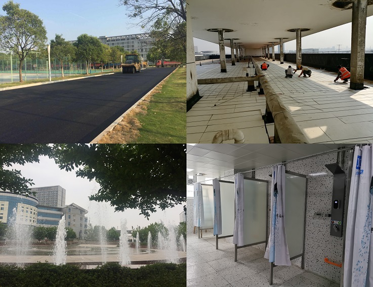 五年来,后勤服务集团先后完成教室和图书馆空调安装工程、南北校区热水进公寓项目、南校区学生食堂维修改造、南校区12学生公寓维修改造、校园部分围墙改造重建、北校区FC楼全面改造、南校区人行道改造、南校区道路沥青工程、南校区易海东南侧新建亭子及周边景观改造提升工程、篮球场地改造、南校区体育看台改建、垃圾中转房新建、北校区风雨操场木地板更换、西大门栈道改造日月广场喷泉维修体育场灯光亮化等43项大型维修改造项目和325个小型维修改造、日常零星维修及应急抢修项目。
