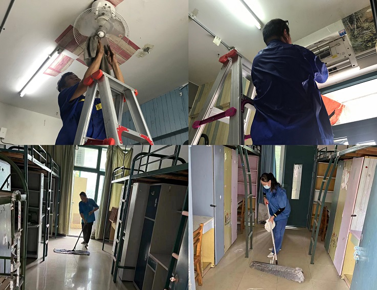 后勤服务集团制定了物业管理服务质量标准,加强日常督查,严格落实工作责任制。通过线下登记和线上反映,第一时间了解师生工作、教学、生活需求,及时维修各楼宇的门窗锁、桌椅、空调、洗衣机、吹风机、自动售货机、直饮水等生活服务设施,确保教学、办公、生活服务设施设备的正常运行为师生提供安全、卫生、舒适的生活环境和满意服务,全力做好后勤服务保障。落实各楼宇值班制度和保洁制度,严格进出楼宇人员的日常登记管理和室内外保洁,确保师生安全和校园环境整洁。特别是在新冠肺炎疫情防控中,严格楼宇进入人员体温检测,引导师生保持一定距离出入,坚持室内外消杀通风,不留卫生死角,有力地保障了师生健康安全。