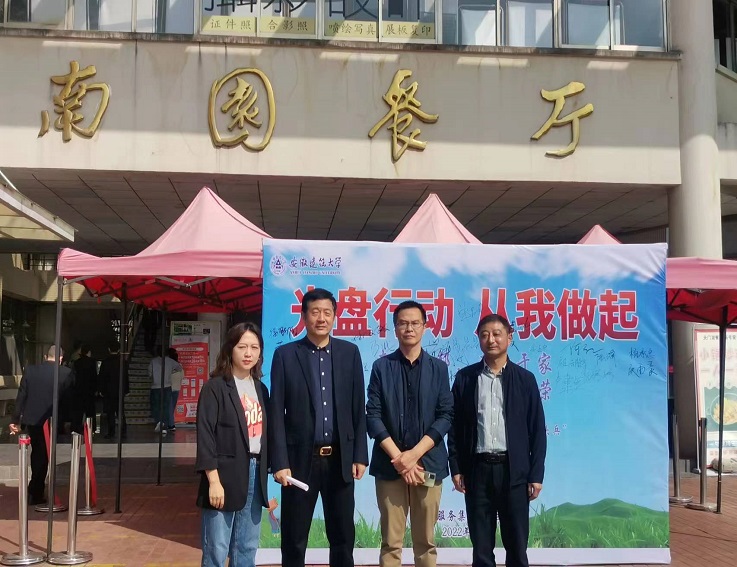 本网讯 为弘扬中华民族勤俭节约的传统美德,增强广大师生“厉行节约、反对浪费”的用餐意识。10月14日,后勤服务集团联合校团委开展“光盘行动、从我做起”的节粮宣传活动,学校各食堂负责人、食堂员工代表以及学生志愿者参加活动。